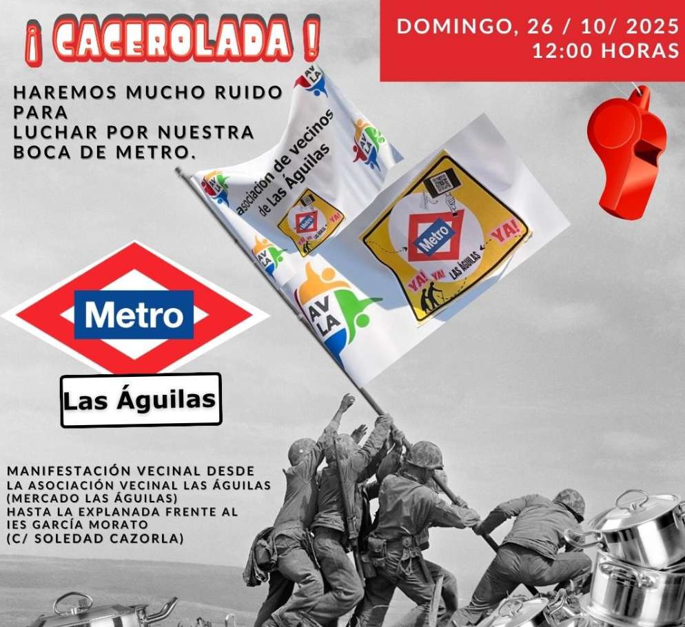 El domingo 26 de octubre. A las 12 de la mañana haremos una manifestación para reivindicar una parada de metro para nuestro barrio.